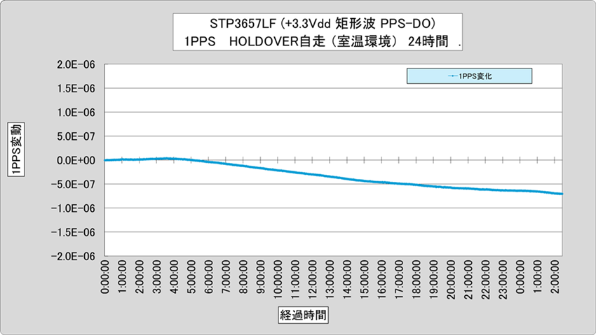 外部1PPS入力が切断されると、内部のOCXOで補正された温度特性および経年変化特性で