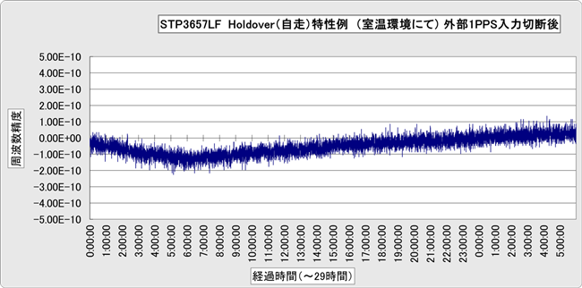 外部1PPS入力が切断されると、内部のOCXOで補正された温度特性および経年変化特性で